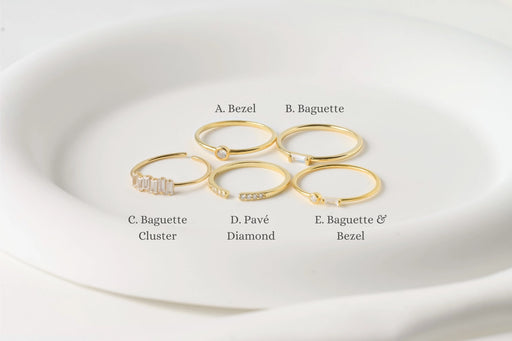 These exquisite rings are all finished in 18k gold. Material: 925 Silver Finish: 18k Gold Styles: Bezel:3.3mm